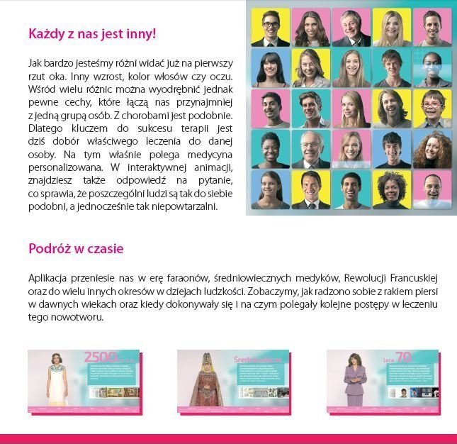 W dniach 11.10.2014 (sobota) do 19.10.2014 (niedziela) na Krakowskim Przedmieściu w Warszawie ma miejsce niezwykła, multimedialna oraz interaktywna wystawa poświęcona rakowi piersi i sposobom jego leczenia. Wystawa zorganizowana w październiku, miesiącu świadomości raka piesi, jest też dobrą okazją do przypominania kobietom o badaniach profilaktycznych.