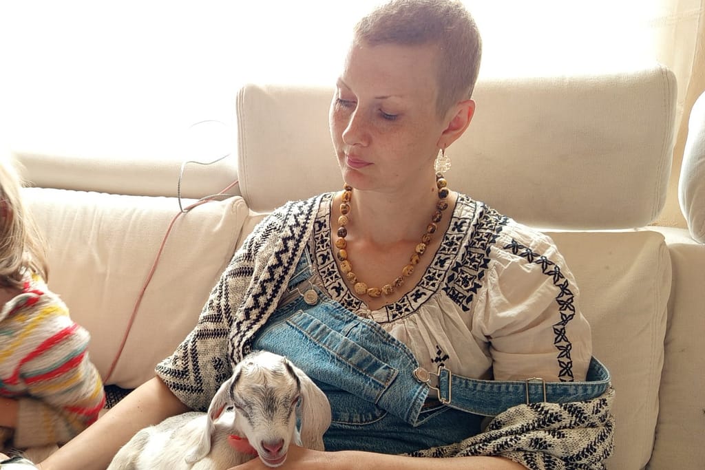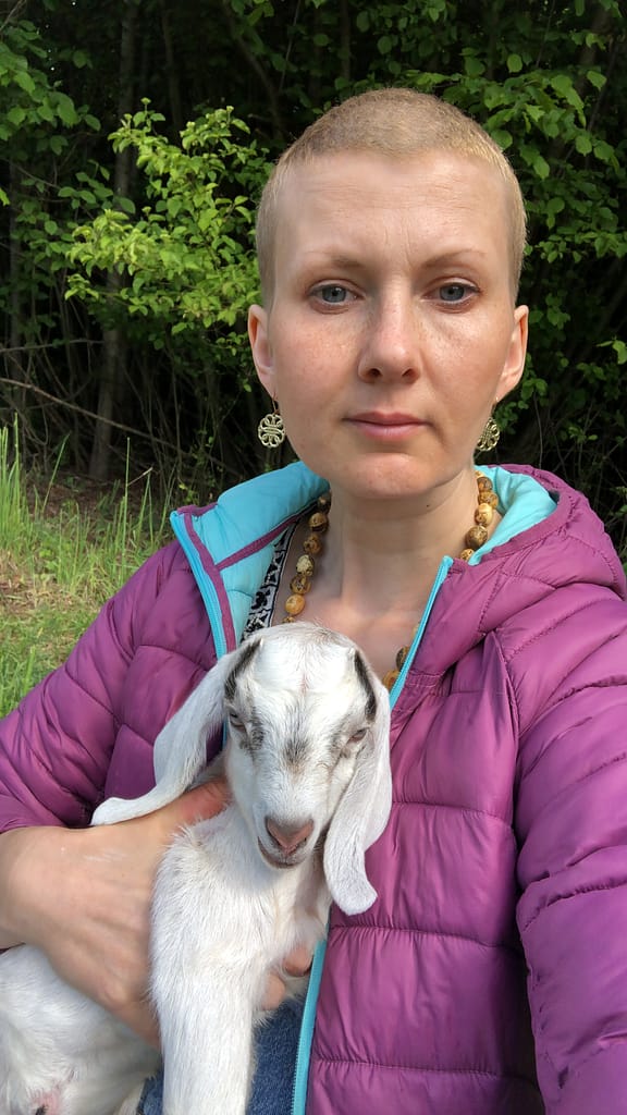 Mieszkamy na terenie pięknej Jury Krakowsko-Częstochowskiej. Nasz dom jest stary. Kupiliśmy go jeszcze przed moją chorobą. Cel, aby go wyremontować i w nim zamieszkać postawiliśmy sobie, gdy już byłam słaba. W domu osiedliliśmy się, gdy byłam już na radioterapii. Do rodziny, oprócz mnie, mojego partnera, syna Mateusza i córki Kai, należą jeszcze: 2 psy (Mila i Krakers), papuga, szynszyle, kot przywieziony z Chorwacji i… dwie owce uratowane przed rzeźnią. Mam dla kogo i po co żyć…